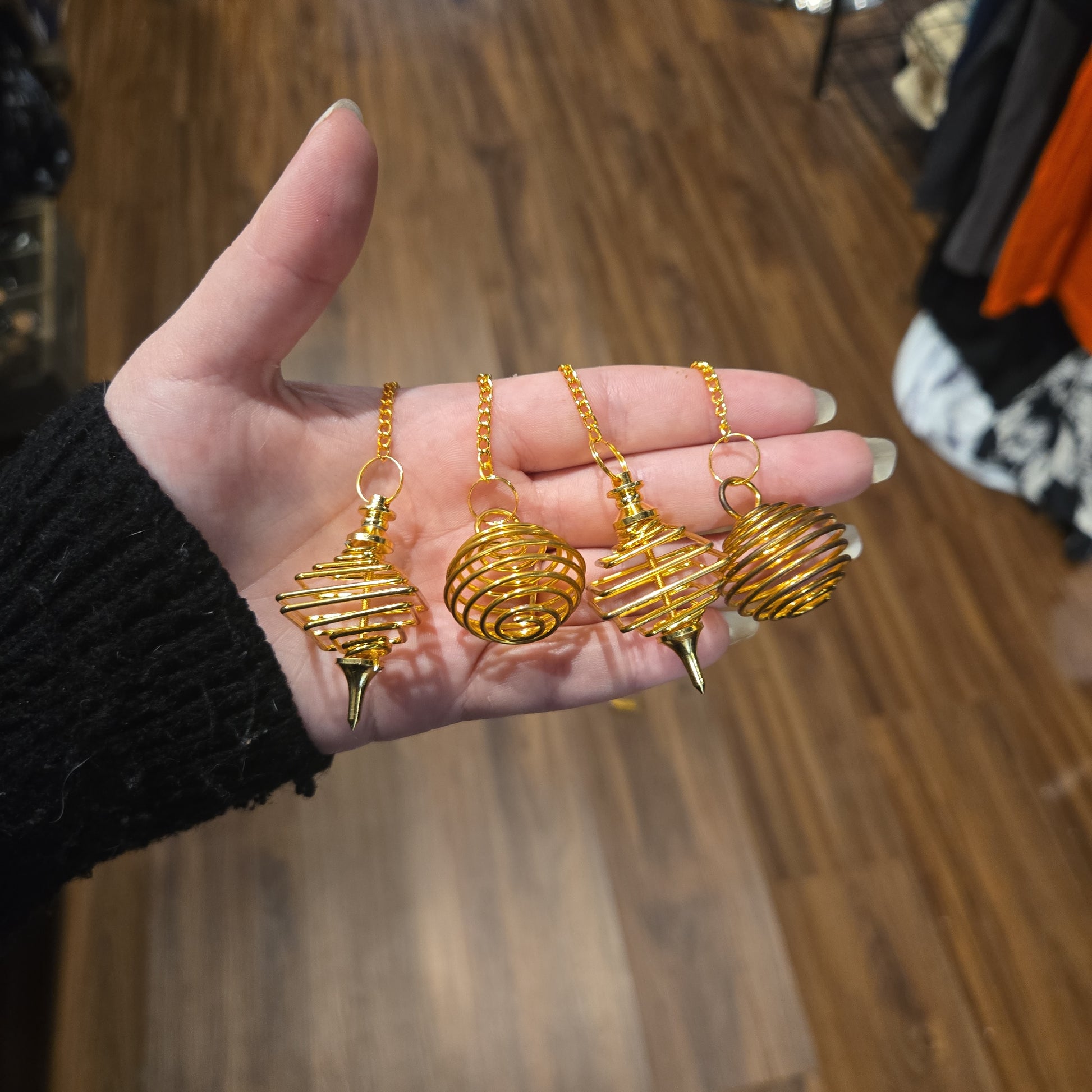 Our Crystal Pendulum Cages offer a customizable approach to energy work, allowing you to insert your own crystal, stone, or charm into the flexible wire cage. Designed for both beginners and experienced practitioners, this pendulum is ideal for divination, chakra balancing, energy healing, and spiritual exploration.