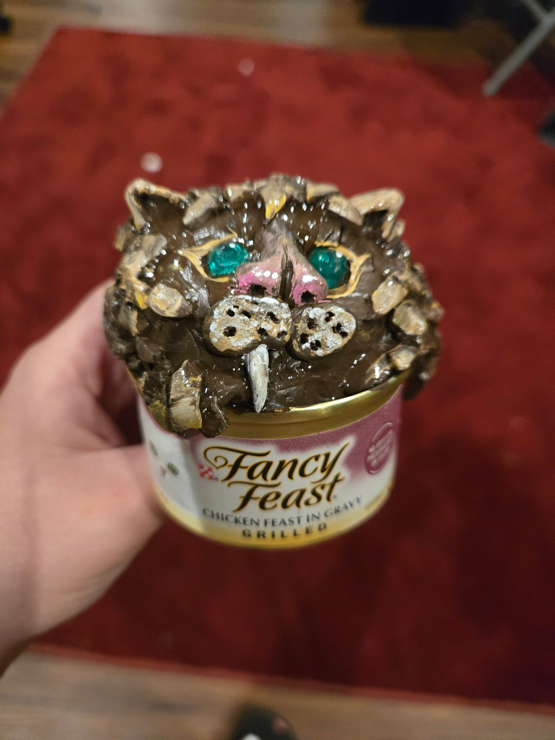 Her eyes say “feed me.” Her posture says “worship me.” Her whole vibe says “you’ll never be the same.” Made from a real cat food can and an unhealthy amount of creative energy, Katya is a one-of-a-kind creation that can never be duplicated (and maybe shouldn’t be).