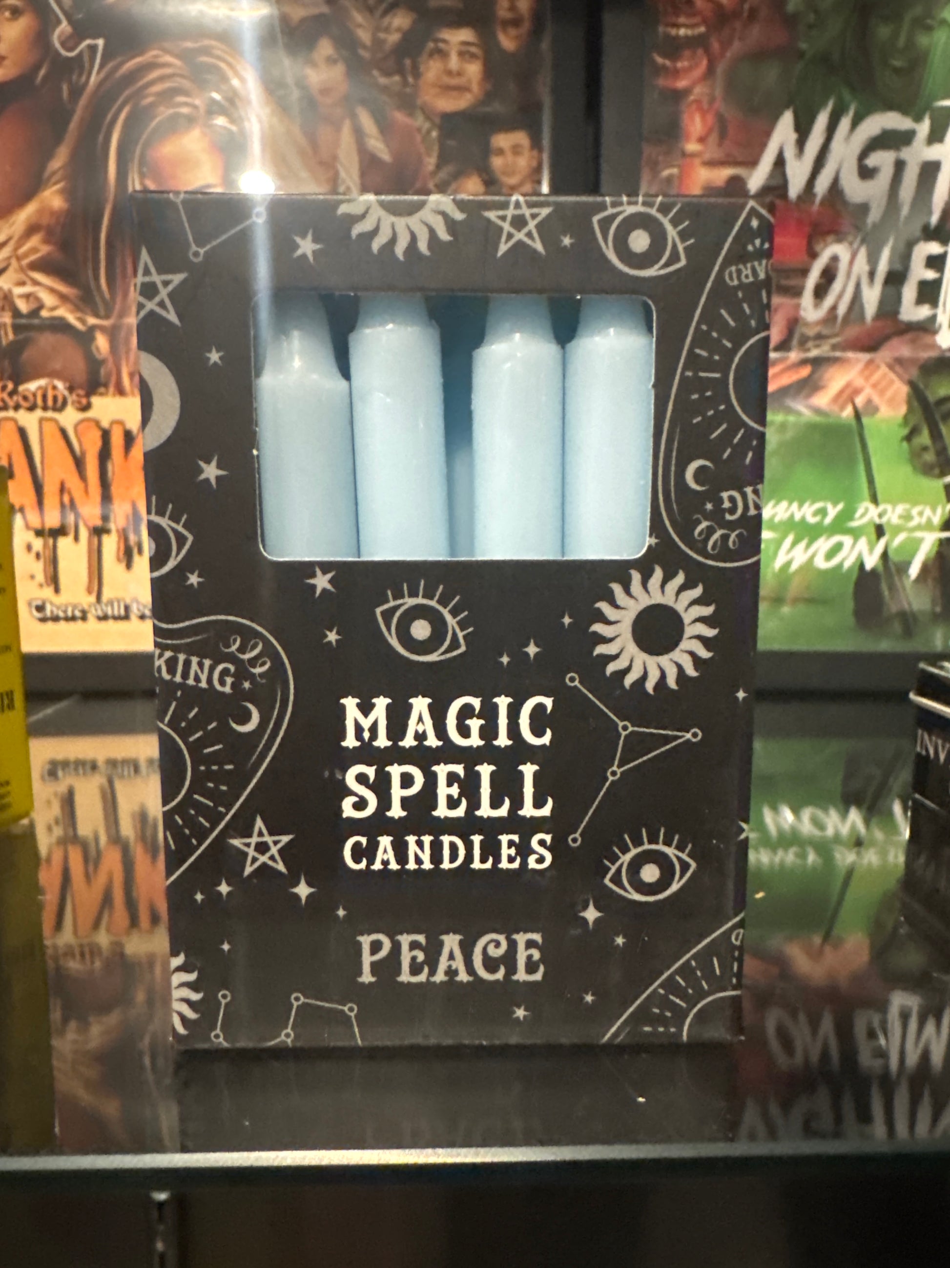 Invoke tranquility, calm, and clear communication with this boxed set of Blue Spell Candles from Spirit of Equinox. Packaged in a sleek black box labeled "Peace", this set includes 12 mini spell candles, perfect for ritual use, meditation, altar work, or daily intention-setting.